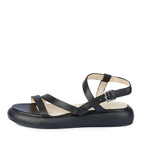 Стильные и модные сандалии для летних прогулок и образов в стиле casual. Это суперкомфортная модель, полностью выполненная из кожи черного белого цвета. Имеет утолщенную полиуретановую подошву 3,2 см высотой, два ремешка на носке, открытую пятку и застежку на пряжке, вокруг щиколотки. Носите обувь под шорты, легкие юбки и платья прямого кроя.