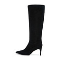 Женственные велюровые сапоги. Подкладка и стелька модели утеплены ворсином. Гибкая и прочная подошва из тунита поддерживает стопы в оптимальном положении. Тонкий устойчивый каблук высотой 81 мм визуально вытягивает силуэт.