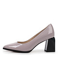 Элегантные женские туфли на устойчивом среднем каблуке из лакированной натуральной кожи с острым носком. Классическая модель с кожаной стелькой, закрытым мысом и пяткой. Удобная для работы, школы и повседневной носки. Прочная подошва, мягкий шаг, благородный фиолетовый цвет, износостойкие материалы.