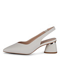 Элегантные туфли – прекрасный выбор для летних образов в деловом стиле, торжественных выходов и мероприятий. Модель выполнена в классическом дизайне, но имеет комфортный квадратный каблук-трапецию 5,5 см. Носок острый и закрытый, задник открытый, на резинке. Изюминка обуви – серебристая окантовка по верху каблука. Материал натуральная кожа.