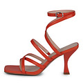 Оранжевые кожаные босоножки с высокой шнуровкой — изящное и женственное прочтение тренда на обувь гладиаторов. Подкладка мягких ремешков выполнена из натуральной кожи, стелька — из нежной кожи шевро, что обеспечивает комфорт стоп. Фигурный каблук высотой 83 мм и широкая носочная часть формируют оптимальное распределение нагрузки по стопе.