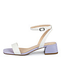 Изящные кожаные босоножки в стиле «колор-блок». Тонкие ремешки с подкладкой из натуральной кожи надежно фиксируют обувь на ноге. Широкий каблук высотой 41 мм обеспечивает оптимальное распределение нагрузки по стопе.