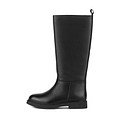Минималистичные черные кожаные сапоги с широким голенищем. Пара утеплена ворсином и натуральным мехом. Модель с удобной застежкой на молнию. Эластичные вставки на голенщине гарантируют удобную посадку. Утолщенная подошва из материала ТЭП защищает стопы от холода и обеспечивает надежное сцепление с поверхностью.