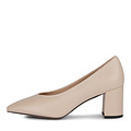 Графичные молочные туфли на устойчивом каблуке. Верх выполнен из матовой кожи шевро.  За идеальную посадку и хороший воздухообмен отвечают кожаная подкладка и перфорированная стелька из нежной кожи шевро. Прочная и нескользкая подошва из тунита обеспечивает комфорт при ходьбе. Каблук высотой 70 мм формирует оптимальную поддержку стоп.