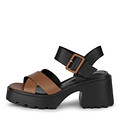 Эффектные черно-коричневые босоножки на платформе.  Верх изготовлен из мягкой кожи шевро. Кожаная подкладка и стелька из нежной кожи шевро обеспечивают комфорт стоп в течение всего дня. Прочная подошва из полиуретана поддерживает стопы в оптимальном положении. Широкие ремешки надежно фиксируют пару на ноге.