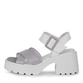 Удобные серые босоножки на платформе с широким каблуком.  Верх изготовлен из мягкой кожи шевро. Кожаная подкладка и стелька из нежной кожи шевро обеспечивают комфорт стоп в течение всего дня. Прочная подошва из полиуретана поддерживает стопы в оптимальном положении. Широкие ремешки надежно фиксируют пару на ноге.