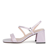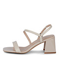 Минималистичные бежевые босоножки на широком каблуке.  Верх изготовлен из лакированной кожи. Кожаная подкладка и стелька из нежной кожи шевро обеспечивают комфорт стоп в течение всего дня. Графичный каблук высотой 70 мм обеспечивает равномерно распределение нагрузки по стопе. Изящные ремешки надежно фиксируют пару на ноге.