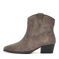 Трендовые серо-бежевые велюровые ботинки в ковбойском стиле. Пара утеплена мягким ворсином, надежно защищающим стопы от холода. Гибкая резиновая подошва обеспечивает устойчивость на любых покрытиях. Пара отлично дополнит образы с лосинами, платьями и джинсами.