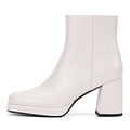 Молочные кожаные ботильоны на устойчивом каблуке. Пара утеплена мягким ворсином. Прочная резиновая подошва формирует устойчивость на любых покрытиях. Модель с застежкой на молнию.