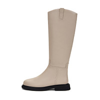 Молочные высокие сапоги в модной ковбойском эстетике. Верх выполнен из натуральной кожи. Подкладка и стелька утеплены мехом. Утолщенная резиновая подошва обеспечивает надежное сцепление с любой поверхностью.