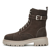 Стильные черные ботинки с декоративным ремешком. Материал верха - бархатистый спилок. Подкладка и стелька утеплены натуральной шерстью. Высокая рифленая подошва из ТЭП отличается прочностью и хорошим сцеплением с поверхностью