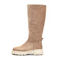 Классические сапоги в бежевом оттенке. Материал верха - бархатистый спилок. Подкладка и стелька утеплены натуральной шерстью. Тракторная подошва из материала ТЭП отличается высокой морозоустойчивостью и прочностью.