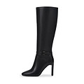 Элегантные черные сапоги на шпильке. Материал верха - натуральная кожа. Подкладка и стелька из ворсина гарантируют дополнительное тепло. Подошва из тунита обеспечивает оптимальную поддержку стоп. Тонкий устойчивый каблук высотой 10 см грамотно распределяет нагрузку.