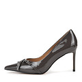 Туфли-слингбэки из натуральной лаковой кожи. Острый мыс декорирован ремешками с пряжками. Стелька из натуральной кожи шевро. Высота каблука — 89 мм. Пара идеально дополнит образы с джинсами, брюками, юбками.