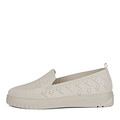 Лаконичные бежевые слипоны с фигурной перфорацией. Легкая модель без подкладки дополнена мягкой кожаной стелькой. Оптимальную поддержку при ходьбе обеспечивает гибкая полиуретановая подошва.