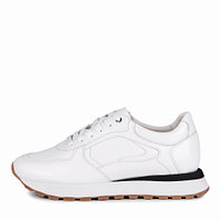 Лаконичные демисезонные кроссовки бежевого цвета из велюра. Модель дополнена вставками из натуральной и лакированной кожи. За комфорт и воздухопроницаемость отвечают кожаная стелька и подкладка. Повседневные кроссовки на высокой подошве из материала ЭВА обладают отличной амортизацией и обеспечивают хорошую поддержку стопы.