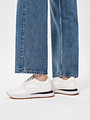 Лаконичные демисезонные кроссовки белого цвета из велюра. Модель дополнена вставками из натуральной и лакированной кожи. За комфорт и воздухопроницаемость отвечают кожаная стелька и подкладка. Повседневные кроссовки на высокой подошве из материала ЭВА обладают отличной амортизацией и обеспечивают хорошую поддержку стопы.
