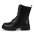 Высокие ботинки выполнены из натуральной черной кожи. Такая пара отлично впишется в любой повседневный образ. Подкладка из бархатистого ворсина придает ощущение комфорта и тепла. Широкая, гибкая и облегченная подошва защитит от погодных внешних воздействий.