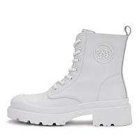 Самые актуальные женские ботинки сезона выполнены из гладкой матовой кожи в нежном оттенке крем-брюлле. Пара будет идеально сочетаться с широким пальто серого, зеленого или синего цвета. Гибкая нескользящая подошва с трендовым наплывом на верх модели стилизована под калоши, благодаря чему можно не бояться глубоких луж и слякоти.