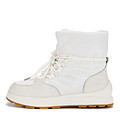 Мягкие белые женские дутики из нейлона и натуральной кожи. Водостойкий нейлон со стеганым рисунком отвечает за легкость и защиту от непогоды, а слой утеплителя и шерсти делает модель уютной и очень мягкой. Нескользящая подошва с протектором улучшит сцепление с любой поверхностью. Шнуровка позволяет регулировать посадку обуви.