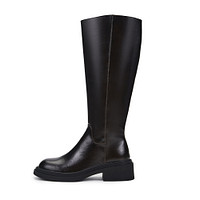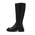 Лаконичные черные сапоги с высоким голенищем. Верх выполнен из практичной кожи из спилка. Подкладка и стелька утеплены мягким ворсином. Утолщенная резиновая подошва отличается прочностью и устойчивостью на любом покрытии. Широкий блочный каблук высотой 5 см грамотно распределяет нагрузку на ноги.