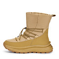 Стильные бежевые дутики с декоративной шнуровкой. Верх выполнен из непромокаемого текстиля, союзка дополнительно укреплена гладкой кожей из спилка с влагонепроницаемым покрытием. Подкладка и стелька из натуральной шерсти поддерживает комфортную температуру внутри обуви на улице и в помещении. Высокая полиуретановая подошва хорошо амортизирует нагрузку на стопы.