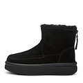 Комфортные теплые угги черного цвета с отделкой из натурального меха. Верх выполнен из прочного спилка с бархатистой текстурой. Стелька из мягкой натуральной шерсти поддерживает комфортную температуру внутри пары. Высокая подошва из материала ТЭП отличается легкостью, морозоустойчивостью и хорошим сцеплением с поверхностью.