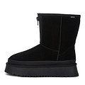 Стиль и комфорт в холодный сезон обеспечат черные полусапоги в стиле угги. Материал верха - бархатистый спилок. Подкладка и стелька утеплены натуральной шерстью. Высокая рифленая подошва из материала ТЭП хорошо амортизируют нагрузку и отличается надежным сцеплением с любой поверхностью.