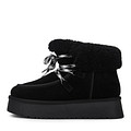 Уютные черные ботинки. Бархатистый верх дополнен функциональной шнуровкой и украшен натуральным мехом. Подкладка и стелька утеплены шерстью. Высокая подошва из материала ТЭП обеспечивает надежное сцепление с любой поверхностью.