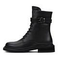 Стильные черные ботинки в байкерском стиле. Материал верха - матовая кожа из спилка. Подкладка и стелька утеплены ворсином. Шнуровка помогает плотно зафиксировать пару на ноге, а молния облегчает процесс надевания. Ремешок на голенище носит декоративную функцию и добавляет модели бунтарского настроения. Утолщенная резиновая подошва отличается прочностью и обеспечивает устойчивость на любой поверхности.