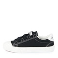 Женские текстильные кеды – прекрасный выбор активных девушек в теплую погоду. Пара выполнена в черном цвете с контрастной белой подошвой и такого же цвета вставкой на заднике. Вместо шнуровки производитель предлагает более комфортную резинку, благодаря которой можно обуться в считанные секунды. Модель можно носить с джинсами и полуспортивными брюками, более смелое и актуальное сочетание с юбкой или платьем.