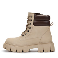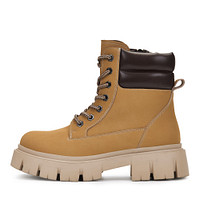 Базовые черные ботинки в стиле рабочей обуви. Верх сочетает матовую и глянцевую кожу из спилка. Пара утеплена натуральной шерстью. Высокая тракторная подошва из материала ТЭП отличается износостойкостью и хорошим сцеплением с поверхностью.