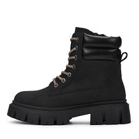 Базовые песочные ботинки в стиле рабочей обуви. Верх сочетает матовую и глянцевую кожу из спилка в разных оттенках. Пара утеплена натуральной шерстью. Высокая тракторная подошва из материала ТЭП отличается износостойкостью и хорошим сцеплением с поверхностью.