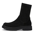 Минималистичные черные полусапоги-чулки. Бархатистый верх дополнен плотным текстилем. Подкладка и стелька утеплены мягким ворсином. Утолщенная подошва из материала ТЭП отличается прочностью и хорошим сцеплением с любой поверхностью.