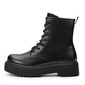 Массивные черные ботинки на платформе. Верх выполнен из современной искусственной кожи. Подкладка и стелька утеплены мягким ворсином. Широкая рифленая подошва из материала ТЭП отличается легкостью, прочностью и хорошим сцеплением с любой поверхностью. Модель с высокой шнуровкой и удобной застежкой на молнию.