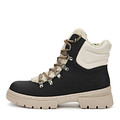 Актуальные черно-бежевые ботинки с высокой шнуровкой. Комбинированный верх сочетает бархатистый искусственный нубук и матовую искусственную кожу. Пара утеплена синтетическим аналогом шерсти. Высокая тракторная подошва из материала ТЭП отличается износостойкостью и хорошим сцеплением с поверхностью.