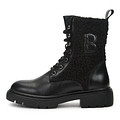 Оригинальные черные ботинки с высокой шнуровкой. Верх из современной искусственной кожи дополняют модные плюшевые вставки из текстиля. Внутри модель утеплена мягким ворсином. Высокая подошва из материала ТЭП обеспечивает устойчивость на любой поверхности.