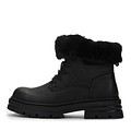 Лаконичные черные ботинки с отделкой под мех. Материал верха - современная искусственная кожа. Пара утеплена мягким ворсином. Утолщенная подошва из материала ТЭП отличается износостойкостью и хорошим сцеплением с поверхностью.