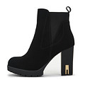 Эффектные черные ботильоны с эластичными вставками. Материал верха - современный искусственный нубук с бархатистой текстурой. Пара утеплена ворсином. Тракторная подошва из материала ТЭП отличается хорошим сцеплением с любой поверхностью. Устойчивый каблук высотой 10 см грамотно распределяет нагрузку на стопы.