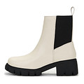 Минималистичные молочные женские ботинки в стиле челси. Верх выполнен из современной искусственной кожи. Подкладка и стелька утеплены ворсином. В паре предусмотрена молния для ускорения процесса надевания. Утолщенная рифленая подошва из материала ТЭП обеспечивает устойчивость на любой поверхности.