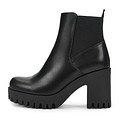 Эффектные черные ботильоны на платформе. Верх выполнен из современной искусственной кожи. Пара утеплена ворсином. Высокая тракторная подошва из материала ТЭП отличается морозоустойчивостью и прочностью. Устойчивый каблук высотой 9 см грамотно распределяет нагрузку на стопы.
