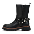 Актуальные черные ботинки в ковбойском стиле. Верх из современной искусственной кожи декорирован ремешками и пряжкой. Текстильные подкладка и стелька обеспечивают комфорт стоп даже при длительной носке. Утолщенная рифленая подошва из материала ТЭП обеспечивает хорошее сцепление с любой поверхностью.