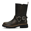 Актуальные коричневые ботинки в ковбойском стиле. Верх из современной искусственной кожи декорирован ремешками и пряжкой. Текстильные подкладка и стелька обеспечивают комфорт стоп даже при длительной носке. Утолщенная рифленая подошва из материала ТЭП обеспечивает хорошее сцепление с любой поверхностью.