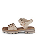 Базовые бежевые босоножки на графичной платформе. Широкие ремешки бережно фиксируют пару на ноге, текстильная стелька препятствует скольжению стоп. Высокая подошва из материала ТЭП отлично амортизирует нагрузку и поддерживает стопы при ходьбе в оптимальном положении. Модель с классической застежкой на пряжку. Пара гармонично впишется в образы с платьями, брюками и шортами.