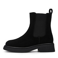 Актуальные черные челси на холодный сезон. Материал верха - мягкая кожа из спилка с эластичными вставками для надежной фиксации пары на ноге. Подкладка и стелька утеплены натуральной шерстью для комфорта стоп на улице и в помещении. Утолщенная подошва из материала ТЭП отличается прочностью, мороостойкостью и хорошим сцеплением с любой поверхностью. Модель с удобной застежкой на молнию.