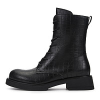 Базовые черные ботинки с высокой шнуровкой. Верх выполнен из практичной кожи из спилка. Подкладка и стелька утеплены мягким ворсином. Удобная боковая молния ускоряет процесс фиксации пары. Утолщенная подошва из материала ТЭП отличается прочностью и хорошим сцеплением с поверхностью.