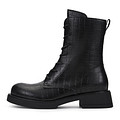 Акцентные черные ботинки с высокой шнуровкой. Верх выполнен из практичной кожи из спилка с тиснением под крокодила. Подкладка и стелька утеплены мягким ворсином. Удобная боковая молния ускоряет процесс фиксации пары. Утолщенная подошва из материала ТЭП отличается прочностью и хорошим сцеплением с поверхностью.