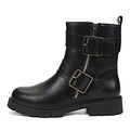 Стильные черные ботинки в модной байкерской эстетике. Кожаный верх декорирован ремнями и пряжками. Подкладка и стелька утеплены натуральной шерстью. Утолщенная подошва из ТЭП с выраженными протекторами отличается легкостью, морозоустойчивостью и хорошим сцеплением в любой поверхностью.