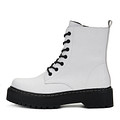 Минималистичные белые ботинки с высокой шнуровкой станут основой для ярких стильных образов. Материал верха - мягкая кожа из спилка. Подкладка и стелька утеплены ворсином. Для ускорения процесса надевания предусмотрена удобная молния. Высокая подошва из материала ТЭП обеспечивает устойчивость на любых поверхностях.