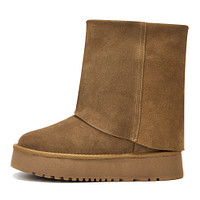 Чёрные полусапоги в стиле высоких угг выполнили из комбинированных материалов: спилок 80% и текстиль 20%. Материал подкладки и стельки - натуральная шерсть. Зимнюю пару с широким голенищем без застежки, имитирующим брючину, поставили на подошву из ТЭП.
